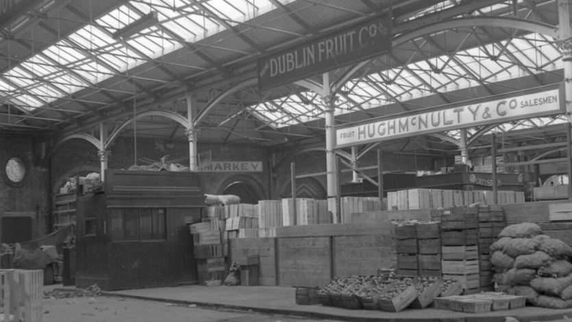In April we welcome historian John Conroy for a talk on the Dublin Fruit and Vegetable Market. Constructed by Dublin Corporation and opened to the public in 1892, the Fruit and Vegetable Market was an historical hub of wholesale activity servicing the city. Through research and interviewing former market workers, Conroy’s work reveals much about the past of this important landmark building, which is currently undergoing significant refurbishment. From the annual ‘Strawberry Auction’ to the intergenerational nature of work at the market, Conroy will explore the fascinating past of one of Dublin’s most beloved buildings.
